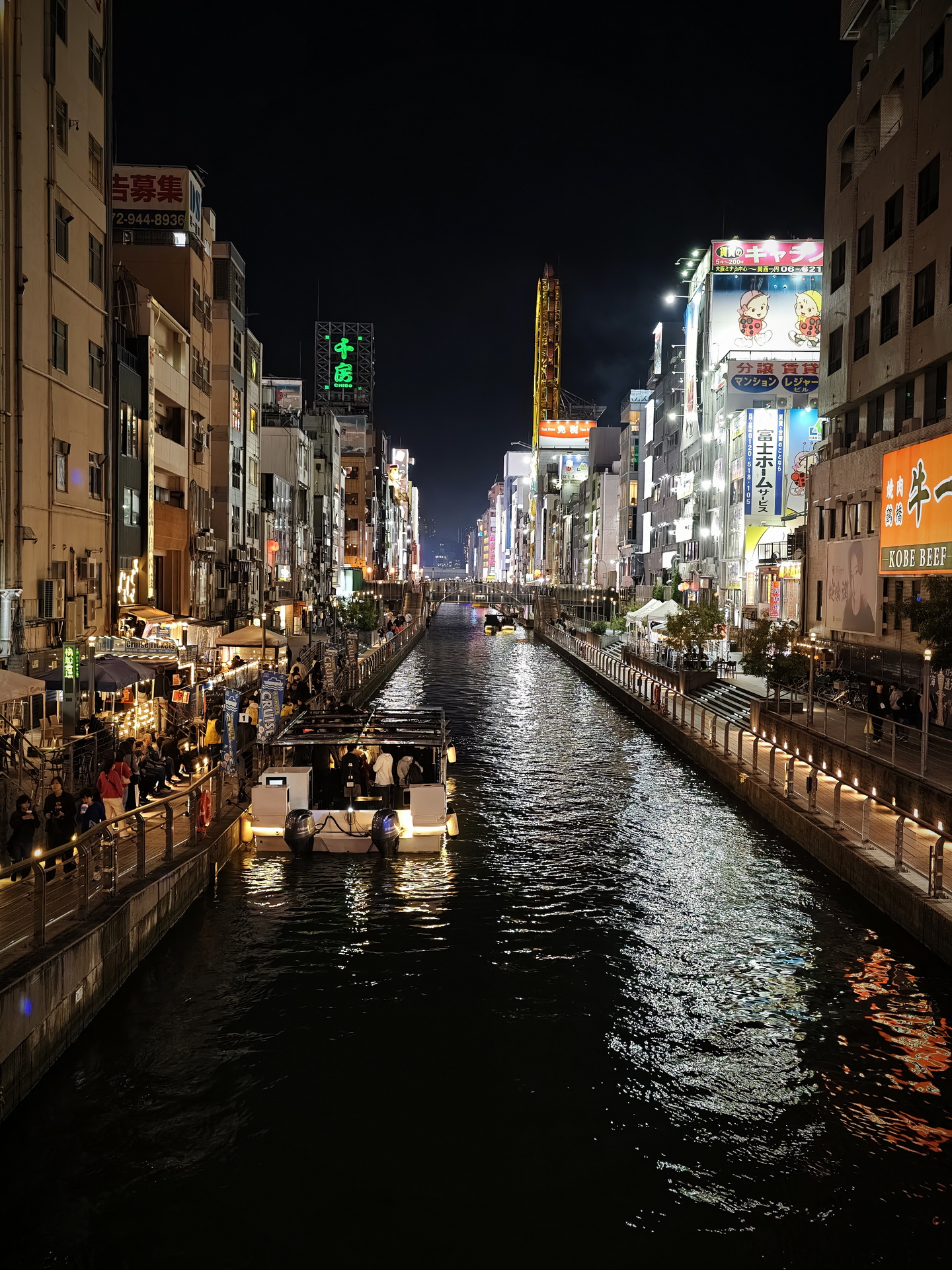 ▲道頓堀夜色璀璨,霓虹倒映水面,熱鬧人聲交織出大阪不夜城的節奏/李杰森 先生 攝