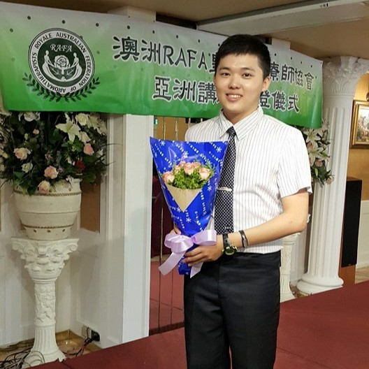 林家豪自 2012 年起投入香氣研究,並於 2015 年 11 月 22 日 受 澳洲 RAFA 皇家芳療師協會授證,正式取得「亞洲講師資格」。