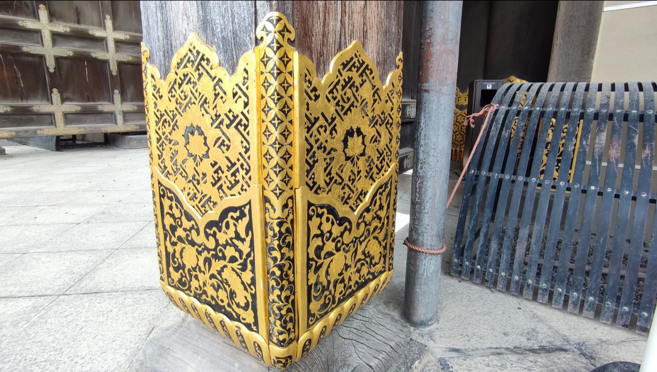 陽光映照下,金箔與雕刻交織出的光影,讓許多旅人剛踏入門口便忍不住停下腳步拍照留念。