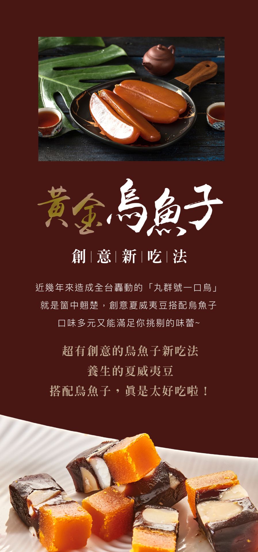 撕開包裝,那如琥珀般透光的色澤,入口後微鹹、回甘、充滿油脂香氣的層次感,無論是過年送禮的氣派,還是好友相聚的下酒珍饈,丸群號烏魚子始終是質感首選。