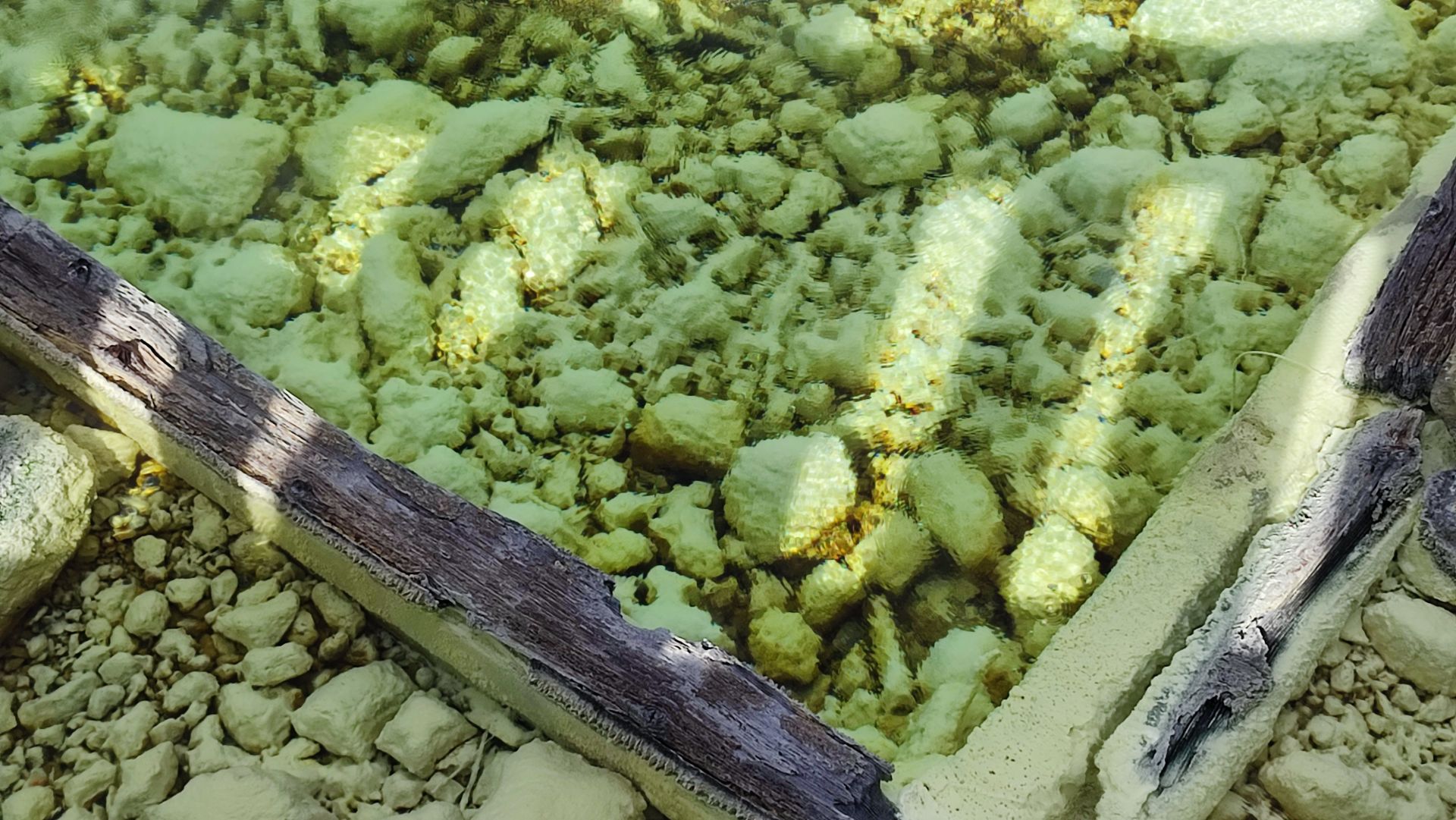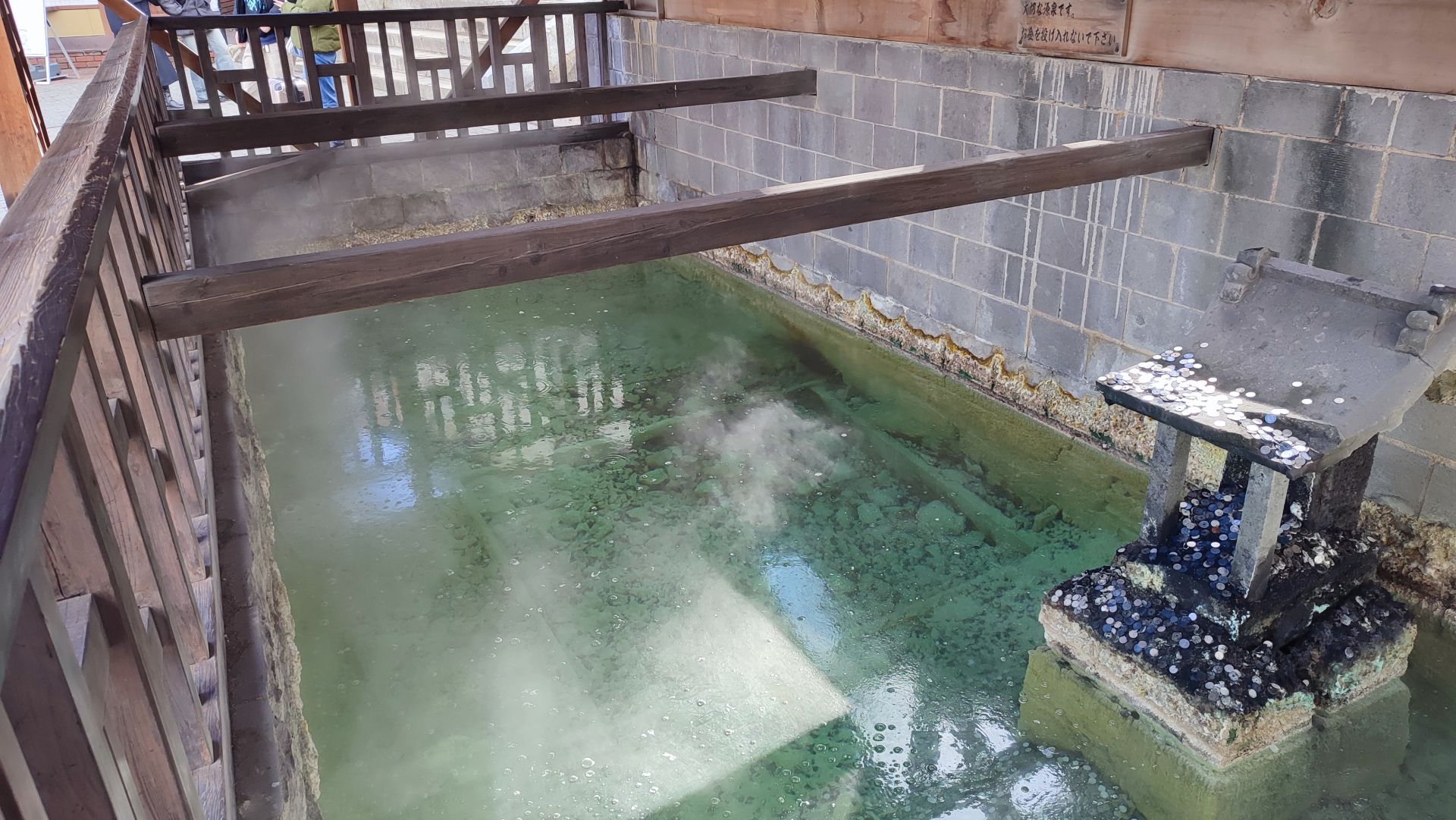 過木槽延長泉水流動時間,使高溫泉水自然降溫,同時促進硫磺與礦物質析出,形成所謂的「湯花」。