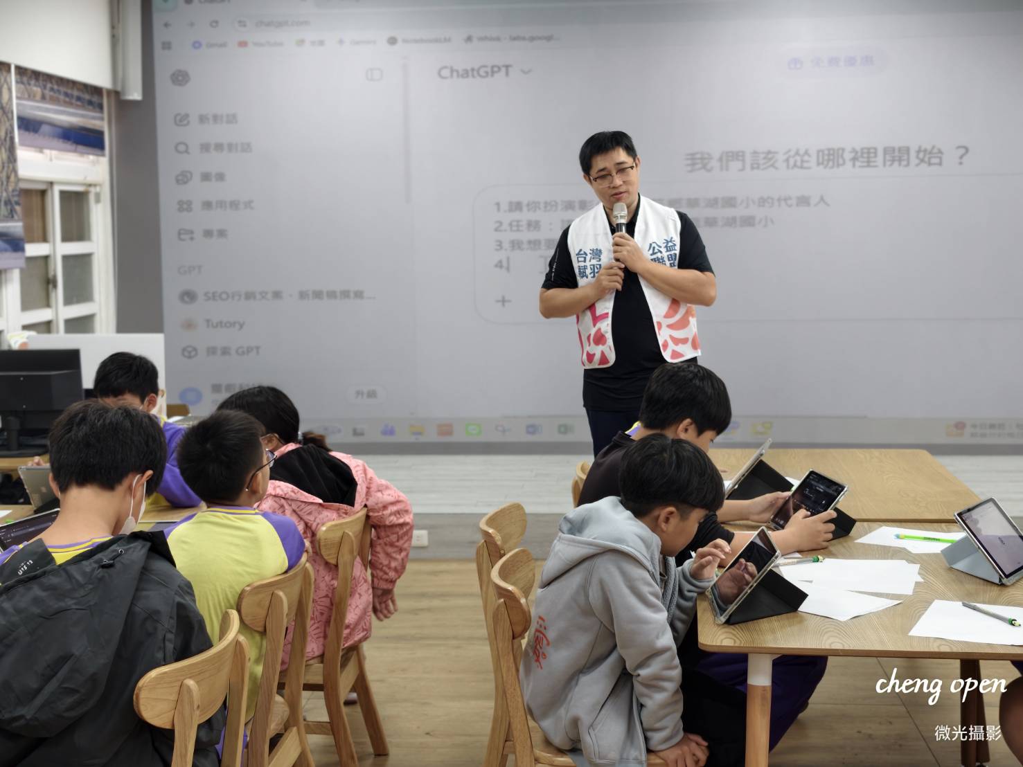 第一天由 元動整合行銷 AI 營銷總監劉聿豐老師 帶領孩子認識 AI 基礎與整合行銷;
