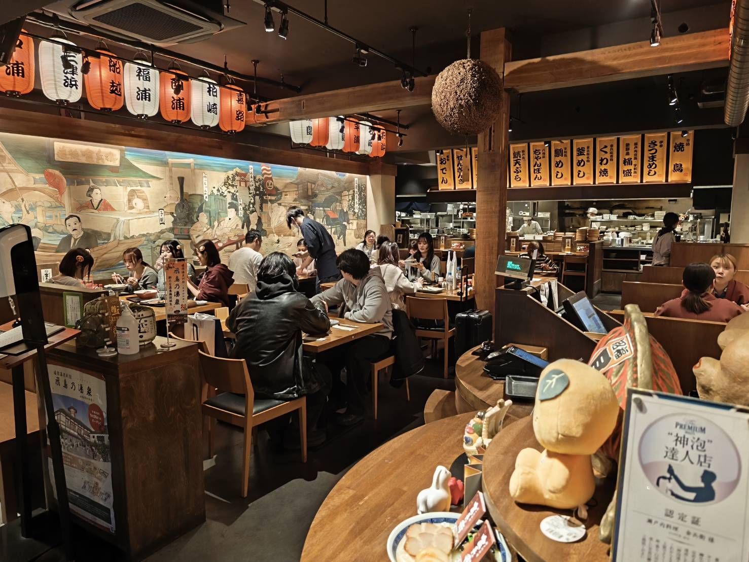 在夜色中格外醒目,散發出濃濃的日式老街食堂氣氛,也成為許多遊客泡湯後覓食的熱門去處。
