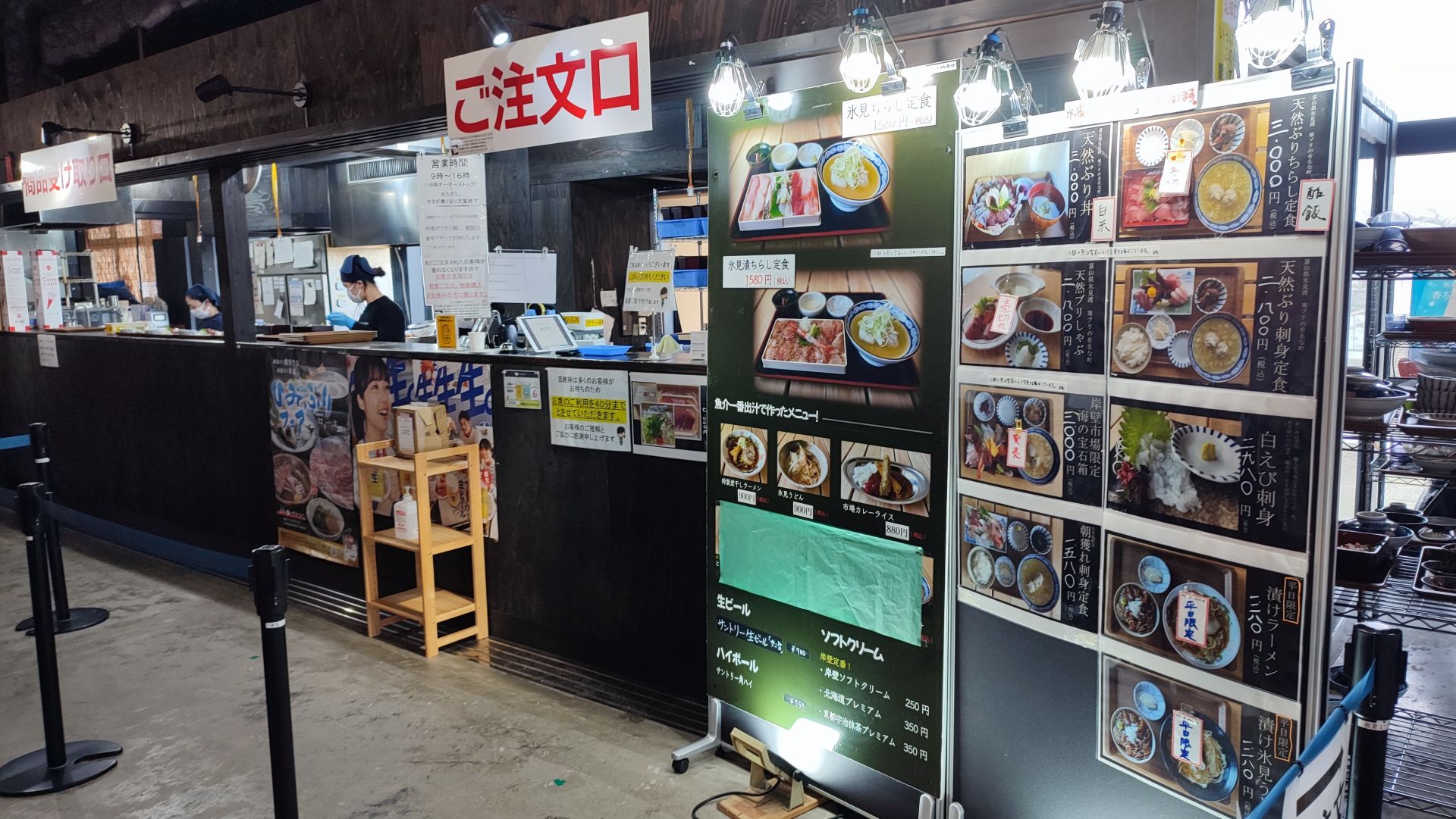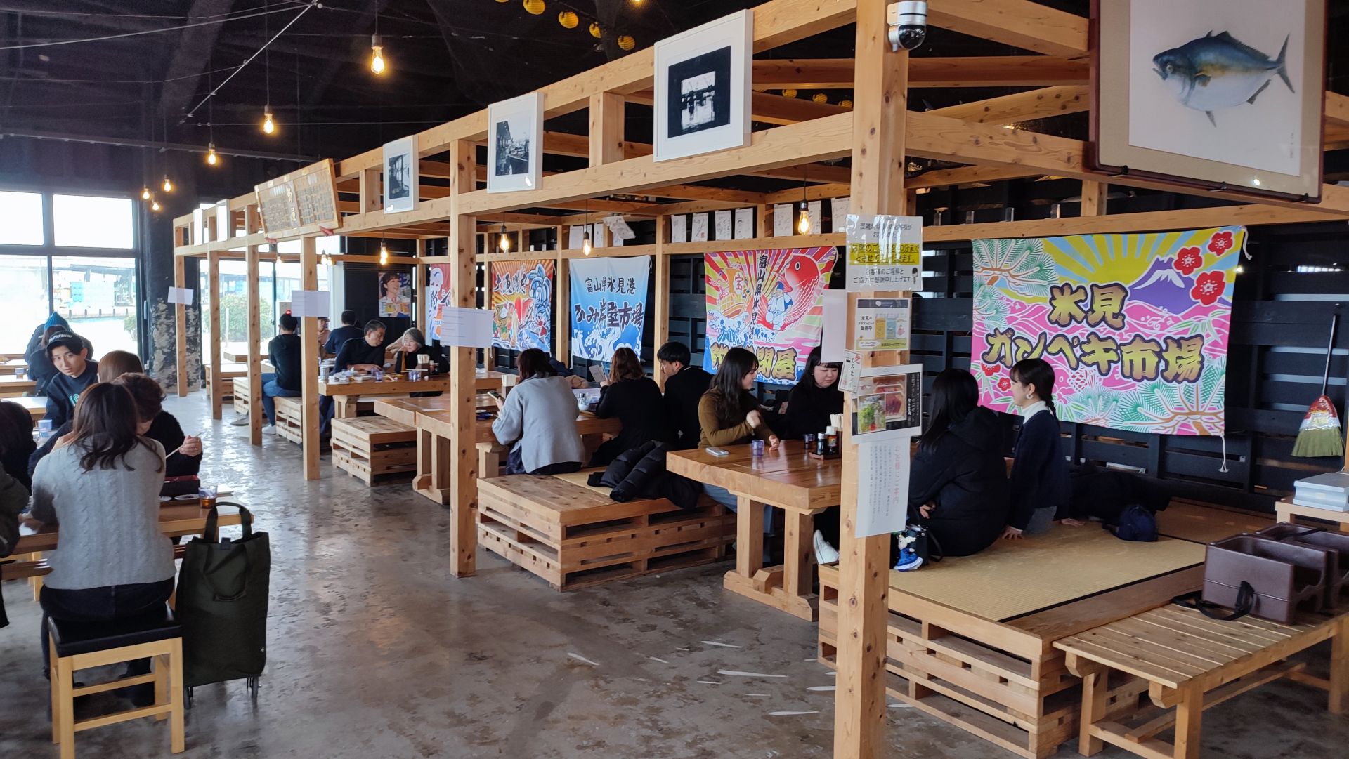餐廳採自助點餐形式,顧客可自由選購後即席享用,現場氛圍熱鬧而富漁港活力,彷彿置身市場般充滿臨場感。